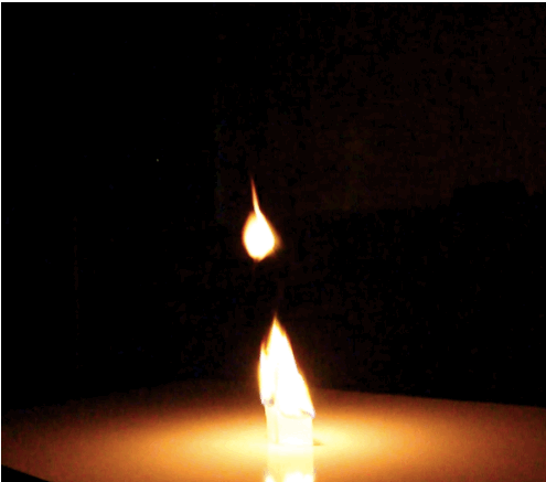 Start off with a lit candle, enjoy it and when you feel like you want to put it out, simply place the spoon on the candle and remove it. As the spoon is moved off and away from the candle, the smoke from the candle follows. The tricky part comes here, you need to have the match ready to light it again. Swiftly, aim the lit match at the end of the smoke not the candle wick and it lights up the candle again.
