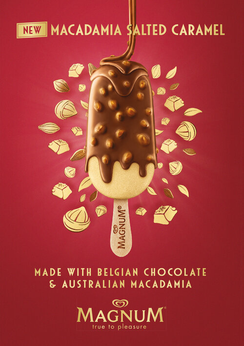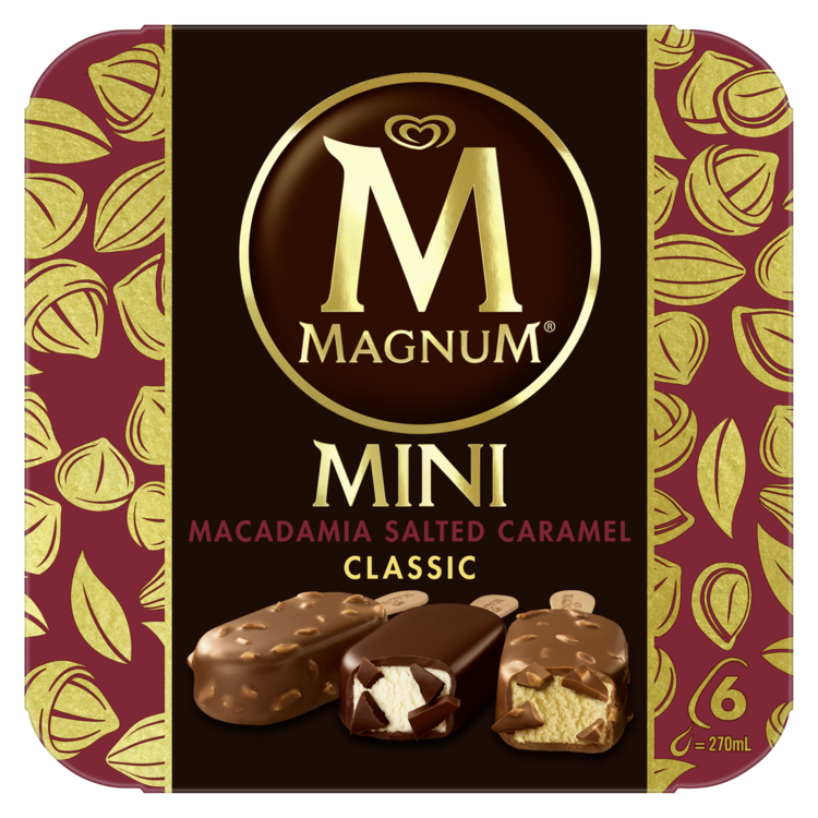 Magnum Macadamia Salted Caramel is now available in single regular sticks at a suggested retail price of RM4.90 each or multipacks of 6 minis (4 Magnum Mini Macadamia Salted Caramel and 2 Magnum Mini Classic) at a suggested retail price of RM14.10 each.