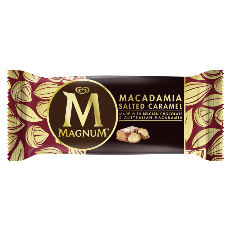 Carefully crafted by expert chocolatiers using only the finest ingredients, Magnum Macadamia Salted Caramel offers superior Magnum pleasure with its velvety smooth salted caramel flavoured ice cream dipped in thick cracking Belgian milk chocolate and crunchy roasted Australian Macadamias. Each bite delivers the rich flavours of cocoa notes, subtle nutty nuances, and a hint of saltiness from the perfectly balanced salted caramel.