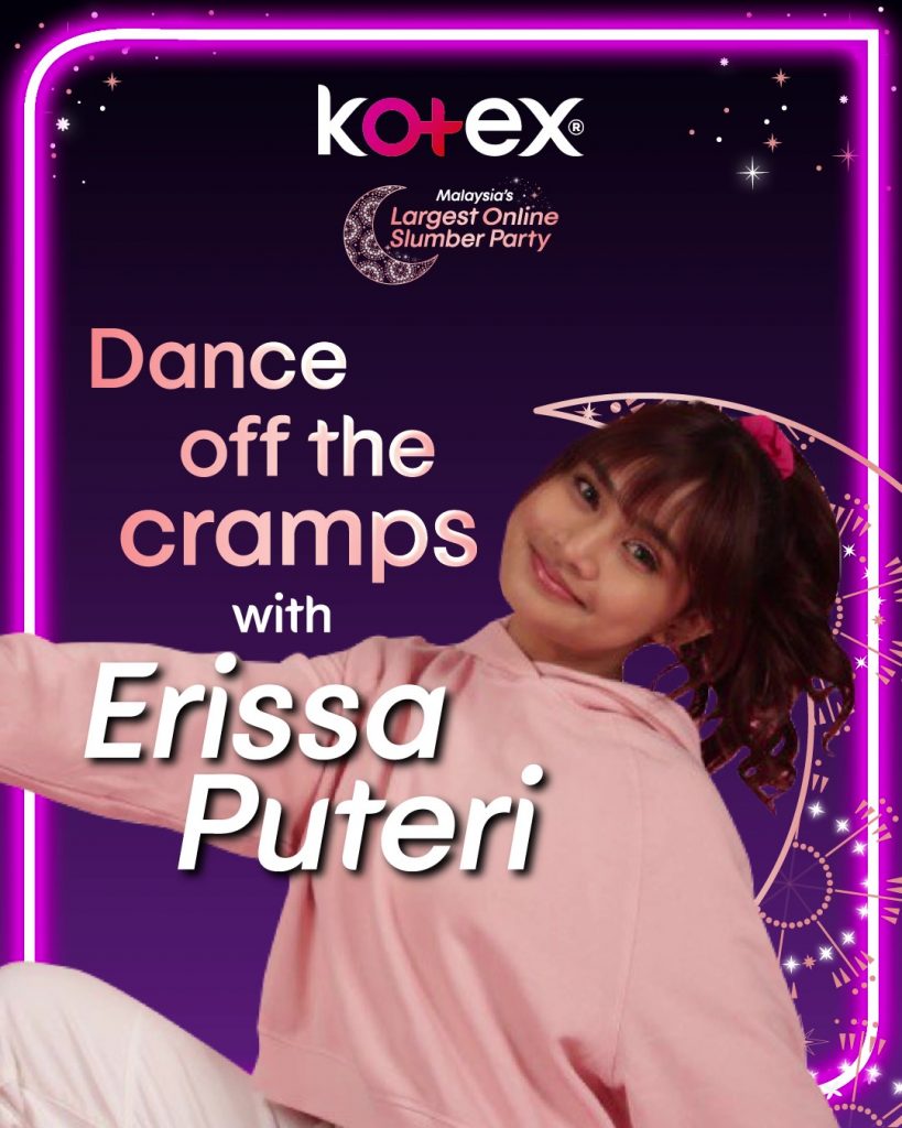 Kotex hosted the largest online slumber party as a way to bring in International Women’s Day and encourage girls and women to take charge of their day. Kicking off the exciting and largest online slumber party, Erissa led a TikTok dance tutorial to Kotex®’s famous theme song to encourage girls to dance off their period cramps and have the confidence to seize the day, period or not.
