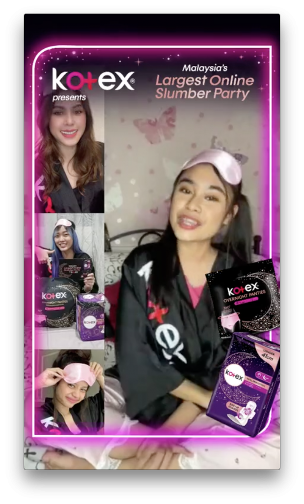 “Kotex has always been at the forefront of addressing women’s period needs to ensure nothing holds her back, not even their period. Women often lose sleep during period nights, worrying about leaks and stains and this International women’s day, we wanted to break the chain of these sleepless, worry-ridden period nights. Empowered with our groundbreaking Overnight Panties and Pads range, we are now enabling women to sleep worry-free all night and be charged to slay the next day. The online slumber party, Malaysia’s first and largest, was a celebration of these fun, liberated period nights to tell every Malaysian woman that period or not, she can,”
