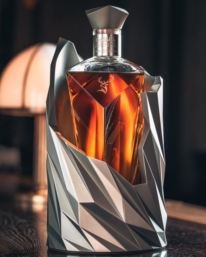 The Glenfiddich 50-Year-Old liquid takes whiskies from three different American Oak refill casks, all matured in the same warehouse before being married together and finished in an American oak refill cask for two years. There are only 220 decanters of this precious liquid in this release across the globe, making it an extremely rare and sought-after collector’s item.