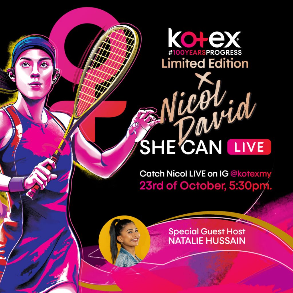 Join us for the first ever Kotex She Can IG Live session with Datuk Nicol David and Yuna and get a first look at the all new Limited Edition range packs and get to know these trailblazing icons like never before!